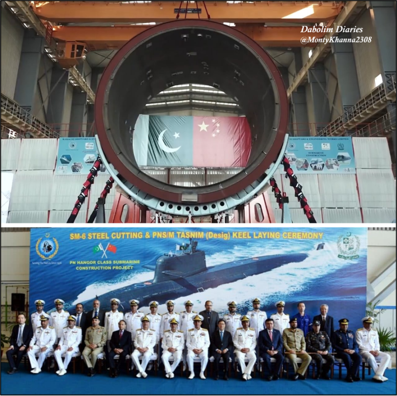- Naming of the First Submarine. The PN Chief of the Naval Staff, Admiral Zafar Mahmood Abbasi visited the Shuangliu Base of WSIL on 29 Apr 2019. The naming ceremony of the first submarine under the programme, Hangor, was held during the visit. The dates of steel cutting and keel laying of Hull Nos 1 and 2 are not in the public domain.