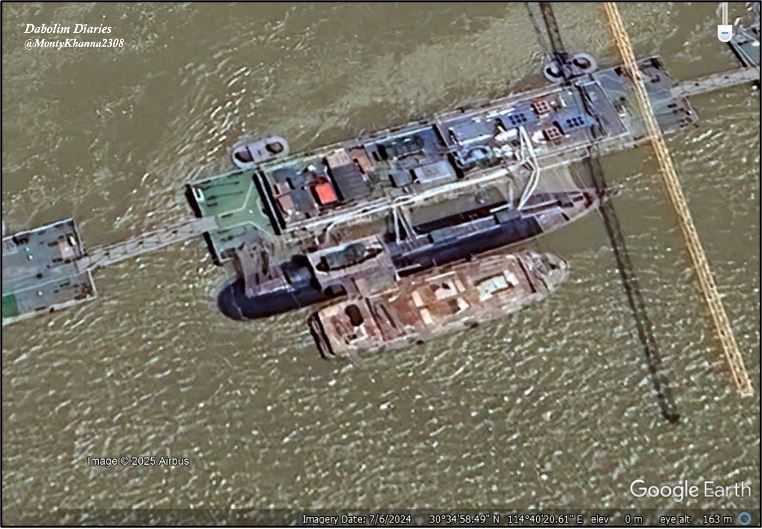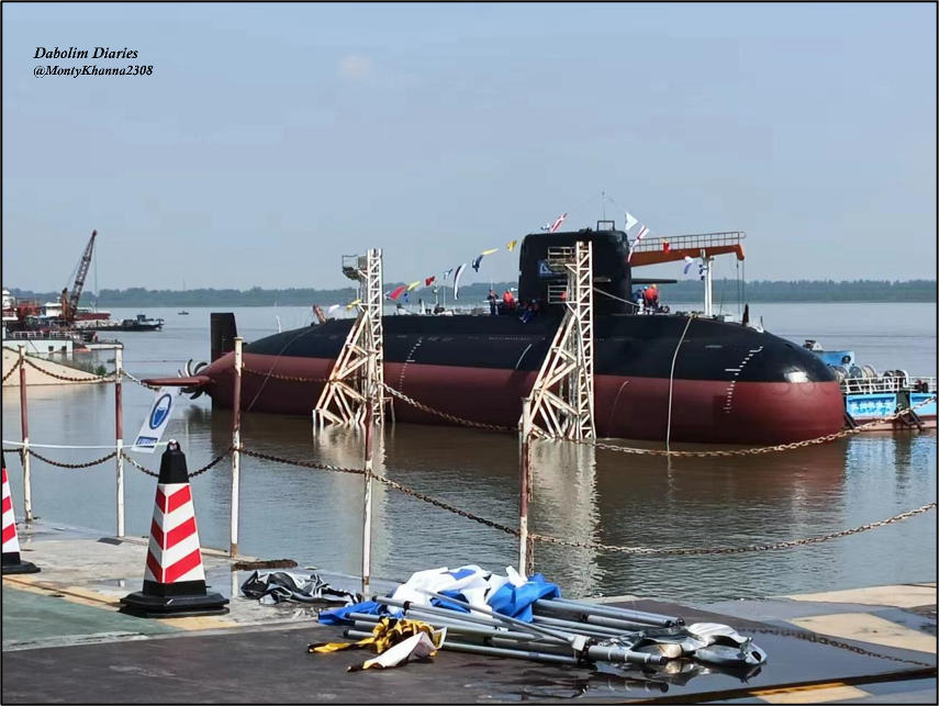 Post launch, the submarine has been berthed at one of the floating wharfs of the yard for further outfitting.
