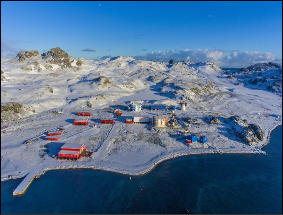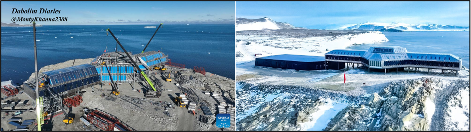 Qinling Station. This is China’s fifth and newest station in the Antarctic. It is located on Inexpressible Island in Terra Nova Bay (74°56′04″S, 163°42′55″E). On completion of construction, it was officially named and opened on 07 Feb 2024. It is China’s largest research base in Antarctica and is designed to operate all year, hosting up to 80 people in the summer and 30 during winter. With a covered area of 5,244 square meters, the station is designed in the shape of the Southern Cross constellation. It has a helipad which is located at a distance of one kilometre. The station is built to a state-of-the-art design. Sixty percent of its power requirement is met by renewable sources for which it has a hydrogen power room with a storage tank, 26 solar panels, 10 wind turbines and other associated equipment.