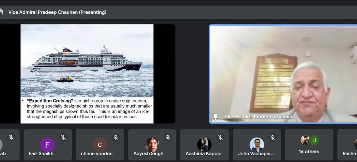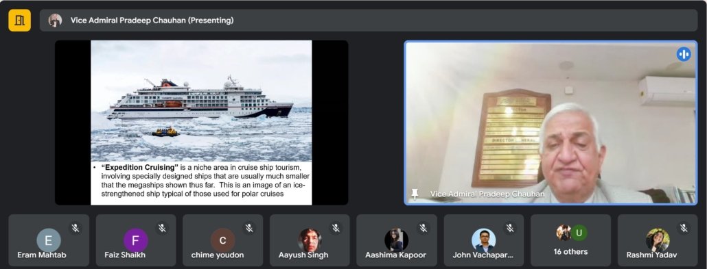 Vice Admiral Pradeep Chauhan, AVSM & Bar, VSM (Retd), Director-General, National Maritime Foundation, delivered an insightful online presentation to Jai Hind College on Cruise Tourism: Types of Vessels, Sustainability, Maritime Issues, & Maritime Legislation. The session explored the evolving landscape of cruise tourism, its environmental and regulatory challenges, and the broader maritime framework governing this sector. An engaging and thought-provoking interaction followed, enriching the discussion further.