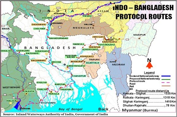The India-Bangladesh Protocol Routes include parts of rivers Ganga, Hooghly, Brahmaputra, and Barak, and the Sundarbans delta (Fig.1). The key routes are indicated in Fig.2.