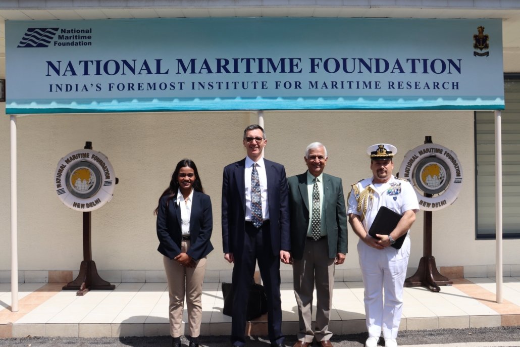 A day ahead of the India-EU Track One Maritime Security Dialogue, Vice Admiral Pradeep Chauhan (Retd), Director-General, National Maritime Foundation (NMF), and Ms Saaz Lahiri, Research Associate, NMF, had the privilege of meeting Mr Giovanni Cremonini, Head of Sector, Maritime Security Division (SECDEFPOL.6), European External Action Service (EEAS), and Captain Fabrizio Falzi, Defence Attaché of the European Union to India.
