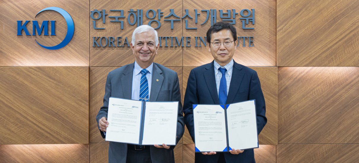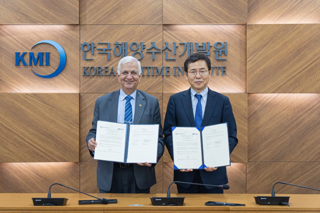 The MoU was signed by Vice Admiral Pradeep Chauhan, AVSM & Bar, VSM, (Retd), Director General, NMF, and Dr Cho Jung-hee, President, KMI, along with Dr Park Young-Gil, Research Fellow, at the KMI Office in Busan.