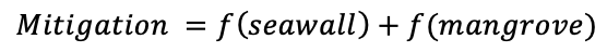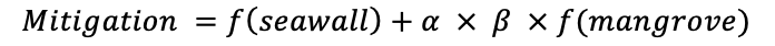 Here, f (mangrove) represents the estimated contribution of the ecosystem based on modelling or historical evidence. However, this formulation implicitly assumes that the ecosystem will establish, mature, and persist over the design life of the infrastructure. In practice, these very assumptions introduce uncertainty. The mangrove system may not reach the intended maturity, or it may degrade or disappear over time due to environmental or anthropogenic factors. Incorporating these uncertainties, the relationship can be more appropriately expressed as: