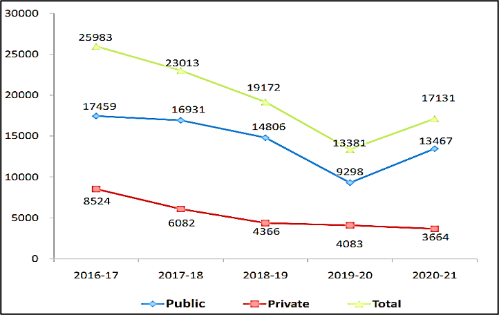 Despite these comprehensive and forward-looking initiatives which demonstrate the Government’s commitment to creating a conducive environment for shipbuilding growth, the industry, as a whole, so far has not been able to fully capitalize on these initiatives. As of March 2023, reports [[22]] indicate that out of the substantial Rs. 4000 Cr corpus allocated for the Shipbuilding Financial Assistance Package, only a few Shipyards have been able to effectively leverage the subsidy, amounting to a mere Rs. 261 Cr. Looking back at the shipbuilding manufacturing discussed earlier, it becomes glaringly apparent that this predicament arises from the Shipbuilding Industry’s inability to attract large-scale commercial orders involving high DWT vessels (with the closure of high-capacity private shipyards, currently private shipbuilding is confined to small vessels), despite the support from Government and presence of domestic demand for ships.