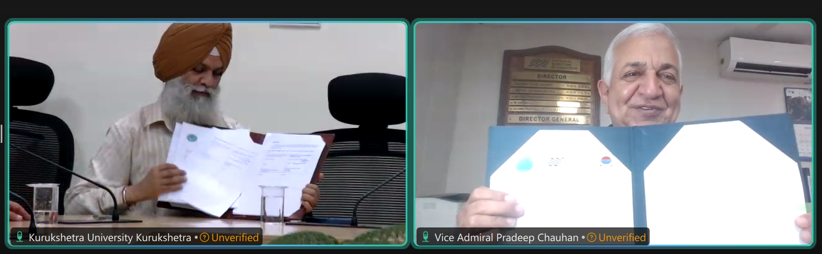 The MoU was signed by Vice Admiral Pradeep Chauhan, AVSM & Bar, VSM (Retd), Director-General of the National Maritime Foundation, and Virender Pal, Registrar of Kurukshetra University.