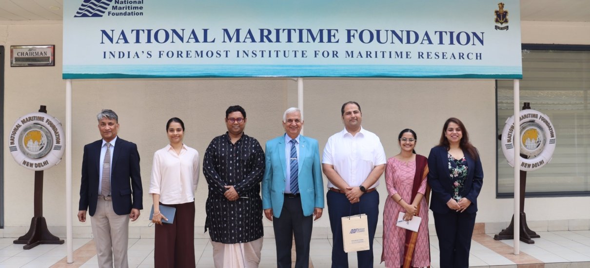 Vice Admiral Pradeep Chauhan, Director-General, @nmfindia, Commodore Manish Sinha, Executive Director, #NMF, Ms Muskan Rai, Research Associate, Ms Priyasha Dixit, Research Associate and Ms Sruthylacshmi B Bhat, Junior Research Associate, met with Prof (Dr) Hindol Sengupta and Mr Rishi Suri—Co-Founders and Directors of @theglobalorder—for a preliminary discussion on a proposed collaborative conference centred on the #BayofBengal.