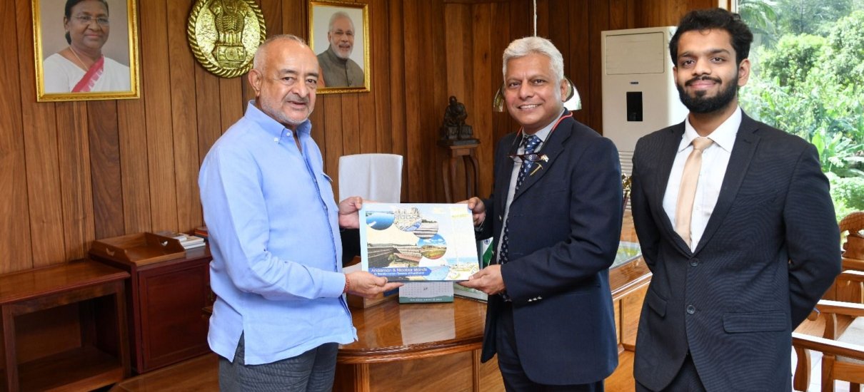 The CDRI Fellowship team from the National Maritime Foundation—Cmde Debesh Lahiri (Retd) and Mr Soham Agarwal—met Admiral D K Joshi, PVSM, AVSM, YSM, NM, VSM (Retd), Hon’ble Lt. Governor of the Andaman & Nicobar Islands and Former CNS & Chairman, NMF. 🌊✨ They briefed him about their project: Enhancing the disaster-resilience of critical infrastructure relevant to India’s underwater communication cables