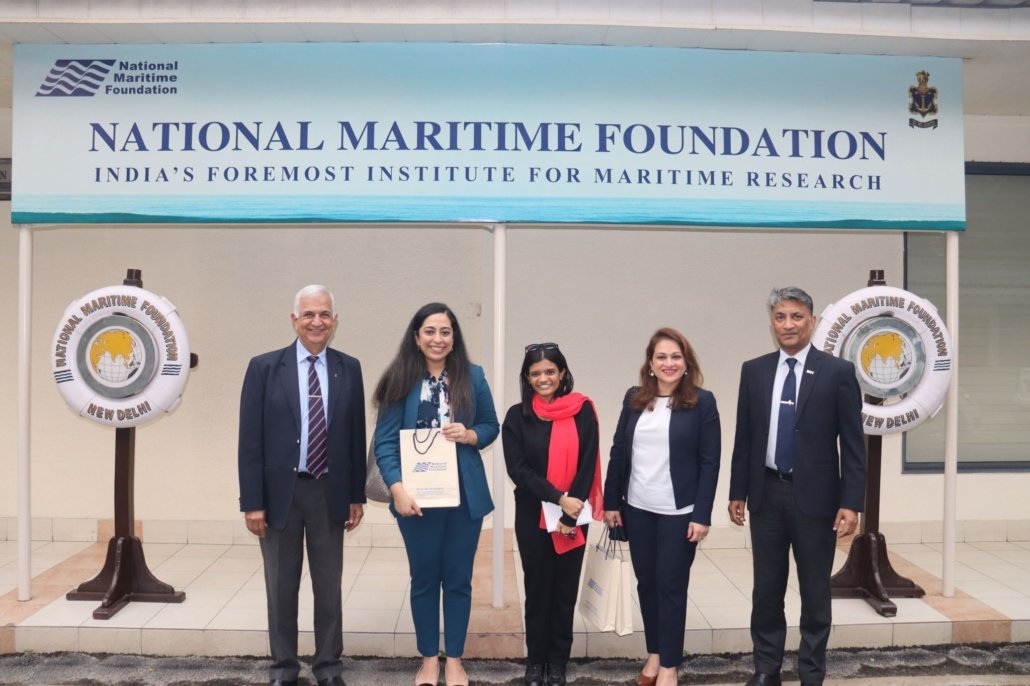 Vice Admiral Pradeep Chauhan, Director General, NMF; Cmde Manish Sinha, Executive Director, NMF; and Ms Anuttama Banerji, Research Associate, USA Cluster, engaged in dynamic discussions with Ms Sahar Khan, Deputy Director, and Ms Akriti Vasudeva Kalyankar, Fellow, Stimson Center.