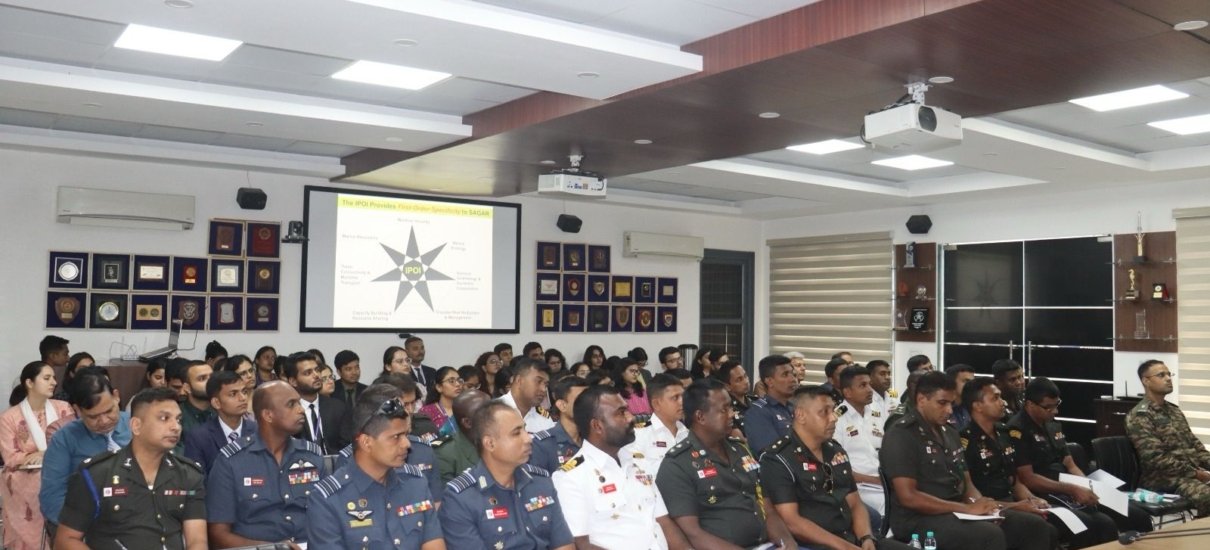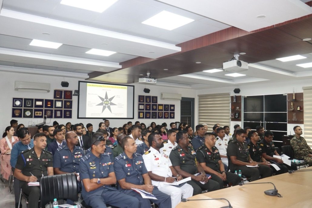 On Friday, 06 September 2024, the National Maritime Foundation hosted a 32-member delegation from the Sri Lanka Defence Services Command and Staff College (DSCSC), led by Col KS Maddumage, RSP, USP, USACGSC, Isc, MDS, MMAS. Admiral Pradeep Chauhan, AVSM & Bar, VSM, Director-General, NMF, highlighted key aspects of developing maritime strategy at various stages and emphasised the importance of India and Sri Lanka strengthening their ties by collaborating on both capacity and capability building. The event concluded with an exchange of mementos between Vice Admiral Pradeep Chauhan and Col KS Maddumage.