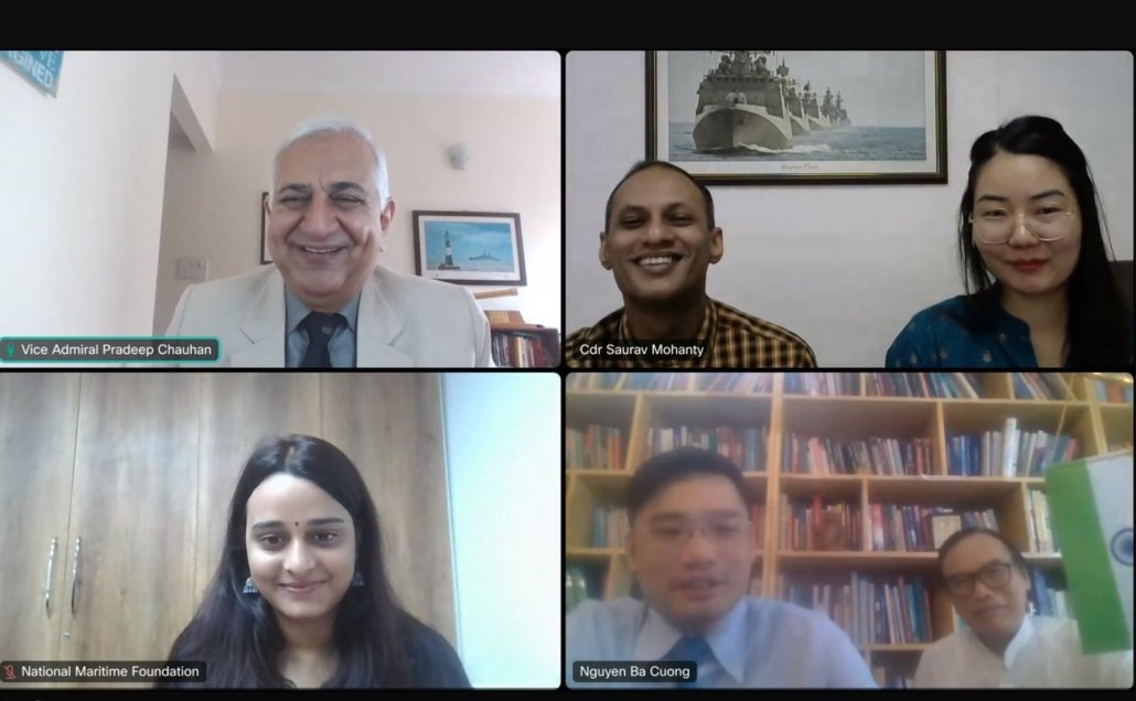 An online meeting was held between the National Maritime Foundation (NMF), New Delhi and the Scientific Research Institute of Sea and Islands (SRISI), Vietnam on 26 September 2023 for renewal of the MoU between the two institutions. Prof (Dr) Nguyen Ba Dien, Chairman SRISI identified numerous areas of research and these were concurred by Vice Admiral Pradeep Chauhan, DG NMF during the online meeting.