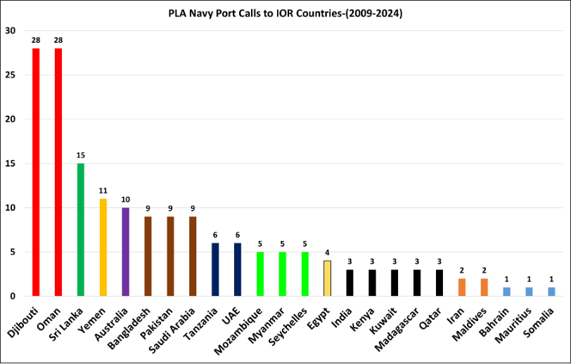 | (ad) | 2009-2024 | PLA Navy units made a total of 396 port calls worldwide. Of these, 172 or 43.3% of the port calls were to IOR countries | |