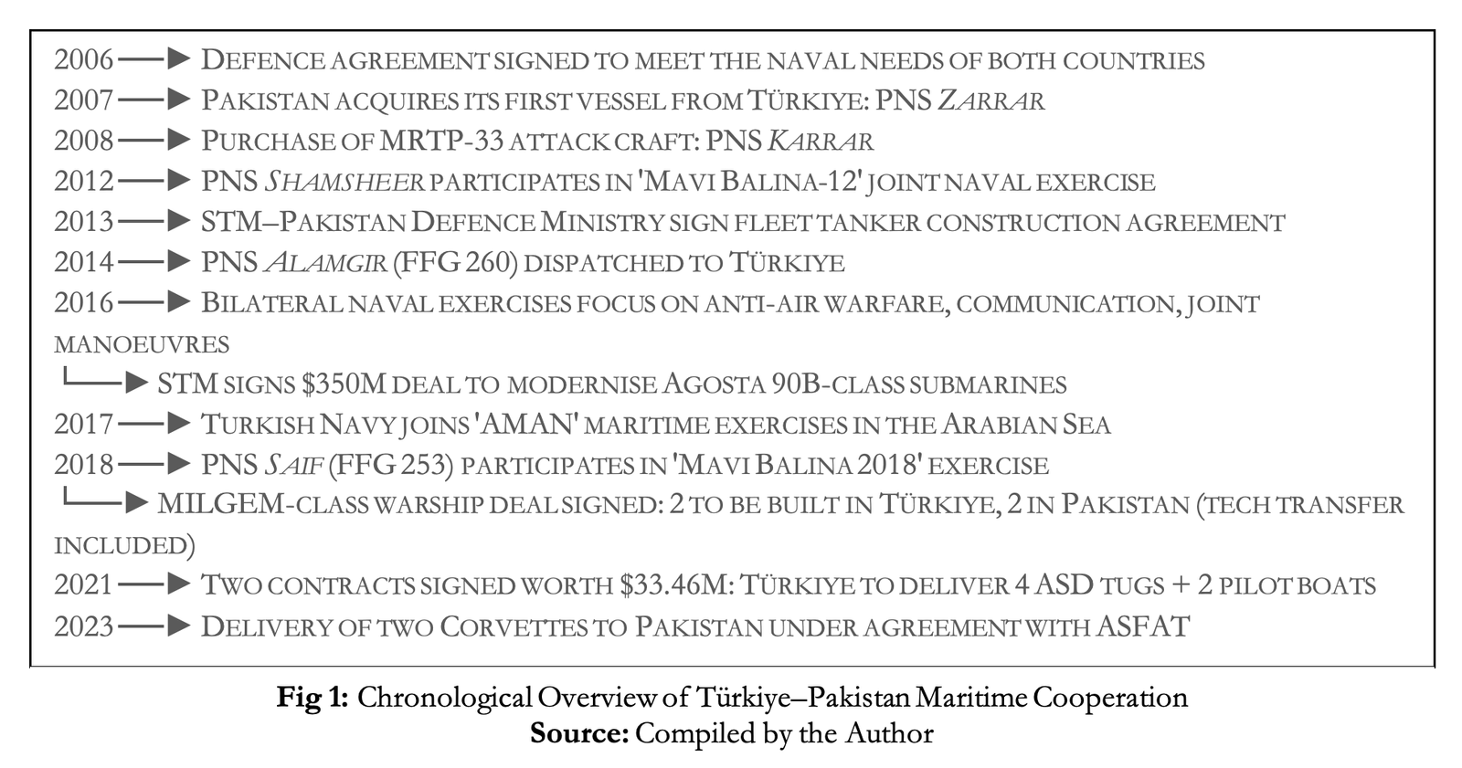 Figure 1 depicts the key milestones outlined above in chronological order, highlighting the progression of Türkiye–Pakistan maritime cooperation since 2006.